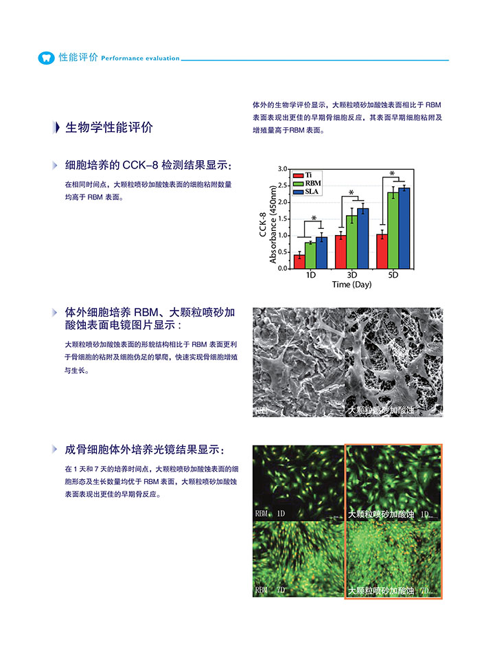 體外細(xì)胞培養(yǎng)RBM、大顆粒噴砂加酸蝕表面電鏡圖片顯示